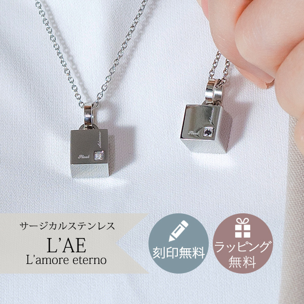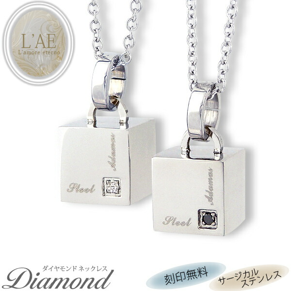 ペアネックレス ステンレス 2本セット 金属アレルギー ネックレス 刻印 名入れ ギフト ホワイト/ブラックから選べる ダイヤモンド サイコロ ダイス チェーン付き ペアペンダント 誕生日 記念日 メンズ レディース 大人 シンプル 送料無料 ラッピング