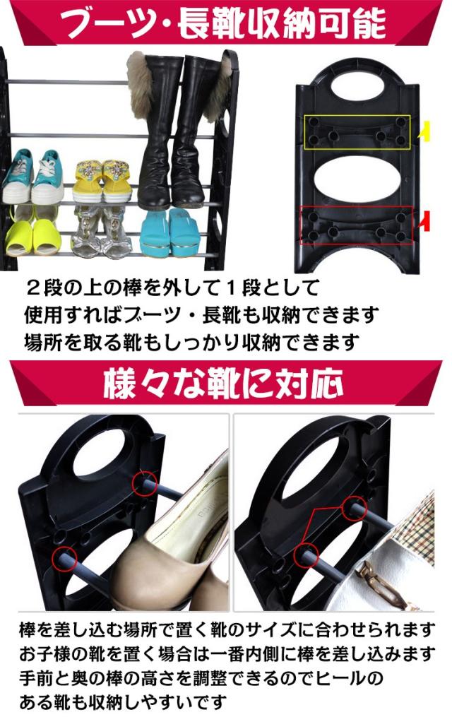 ■2段の上の棒を外して1段として使用すればブーツ・長靴も収納できます