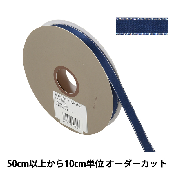 【数量5から】 リボン 『グリッターWサテン 幅約1.2cm 15番色 ネイビー 33112』 TOKYO RIBBON 東京リボン