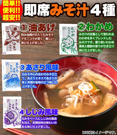 即席みそ汁4種900グラム 75食分 4種類どっさり お湯を注ぐだけ みそ汁の定番 油あげ わかめ あさり風味 しじみ風味