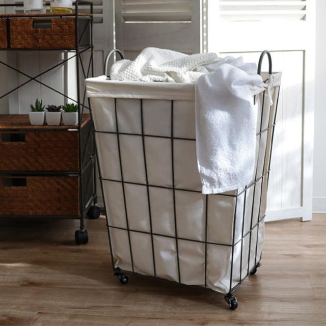 ランドリーバスケット 角型 ワイヤーバスケット キャスター付き 布付き ( ランドリーワゴン 大容量 洗濯かご 布付きランドリーバスケット バスケット 脱衣カゴ ランドリー ワイヤー リビング 収納 北欧 )