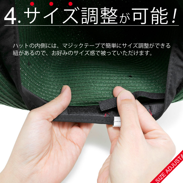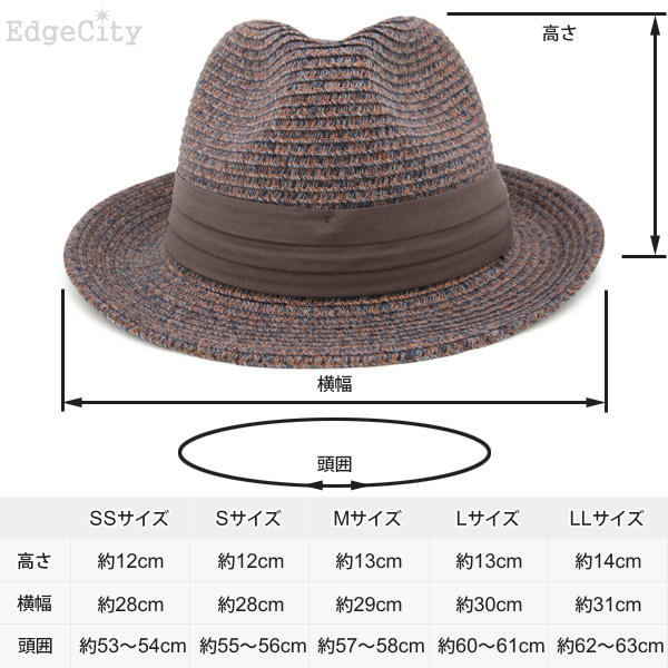 | サイズ | SSサイズ54cm(頭囲:約53〜54cm、高さ:約12cm、横幅:約28cm[つばも含む]、つばの長さ:約4.5cm) Sサイズ56cm(頭囲:約55〜56cm、高さ:約12cm、横幅:約28cm[つばも含む]、つばの長さ:約4.5cm) Mサイズ58cm(頭囲:約57〜58cm、高さ:約13cm、横幅:約29cm[つばも含む]、つばの長さ:約5cm) Lサイズ61cm(頭囲:約60〜61cm、高さ:約13cm、横幅:約30cm[つばも含む]、つばの長さ:約5cm) LLサイズ63cm(頭囲:約62〜63cm、高さ:約14cm、横幅:約31cm[つばも含む]、つばの長さ:約5.5cm) |