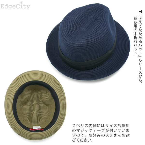 洗えるハット 秋冬 メンズ レディース 帽子 折りたためる 大きいサイズ UV対策 洗濯可能 / WashableたためるRaise中折れハット