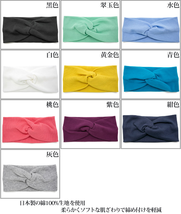 ヘアバンド レディース [メール便可] 綿100 春夏 秋冬 オールシーズン クロス / リブ コットンCrossターバン 日本製