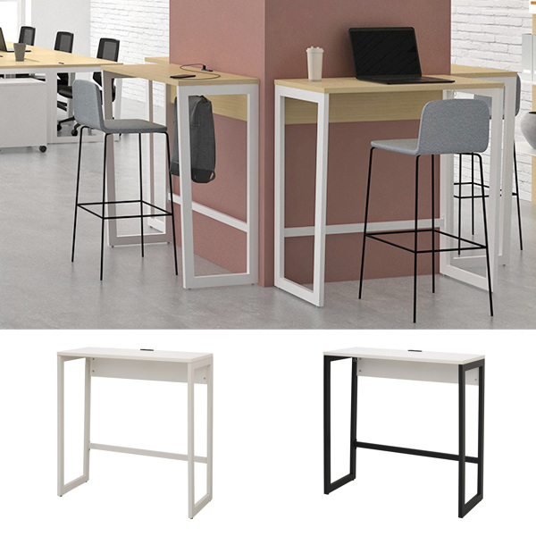 【法人限定】 ハイデスク 幅100cm 奥行45cm ホワイト カウンターデスク オフィス デスク コンセント ロの字脚 つくえ ( スタンディングデスク 立ち仕事 100 オフィスデスク パソコンデスク ハイタイプ スリム )