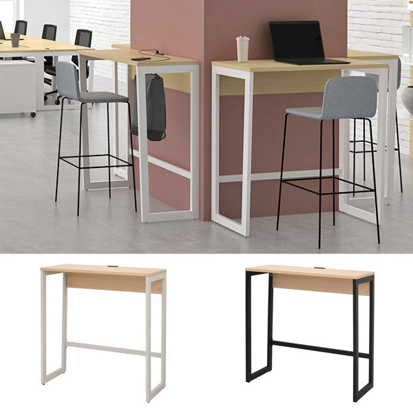 微かに角度をつけたフレーム脚のデザインが特徴的なリスムシリーズのハイデスクです。ハイスツールでの使用に適しています。また近年では、オフィスでスタンディングワークが取り入れられている企業も多くあります。仕事効率の向上や健康維持のために、取り入れてみてはいかがでしょうか。