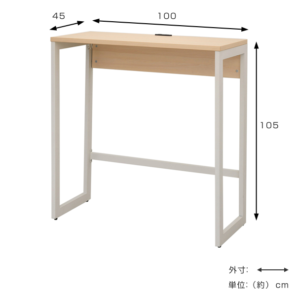 【法人限定】 ハイデスク 幅100cm 奥行45cm ナチュラル カウンターデスク オフィス デスク コンセント ロの字脚 つくえ ( スタンディングデスク 立ち仕事 オフィスデスク パソコンデスク ハイタイプ スリム 100 )