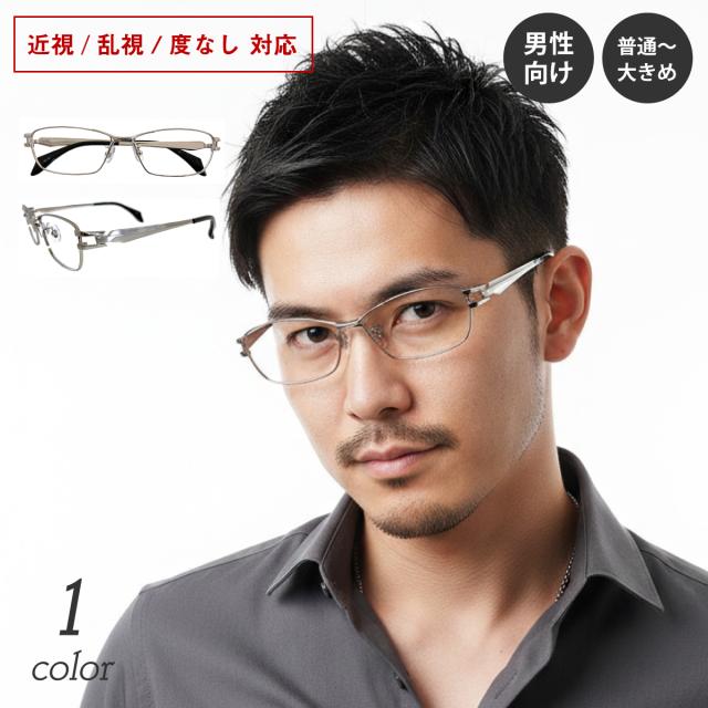 【残り1色】度付き メガネ スクエア メタルフレーム 大きめ 大きい シンプル シルバー 銀縁 ちょいワル 鼻パッド付き 近視 乱視 度なし 伊達 眼鏡 度あり 度入り かっこいい おしゃれ メンズ 男性 ちょい悪