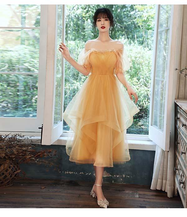 エレガント ドレス 大人 ピアノ 発表会 ミモレ丈 イエロー ファスナータイプ 小さいサイズ オフショルダー パーティー 演奏会 結婚式 ワンピース 大きいサイズ 成人式 同窓会 母親 袖あり お呼ばれ 20代 30代 dw173zezes3