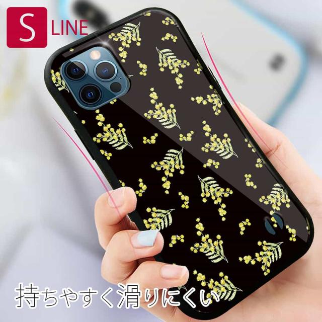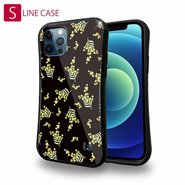 S-LINE ケース iPhone13 mini iPhone13 Pro Max iPhone12 Pro iPhone11 Pro iPhoneXs iPhoneXR Xperia 5 III Xperia 10 III Pixel 5a AQUOS sense6 花 花柄 花束 フラワー ミモザ(ブラック)