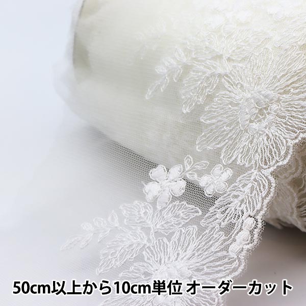 【数量5から】 レースリボンテープ 『チュールレース 幅広 オフホワイト T24196』