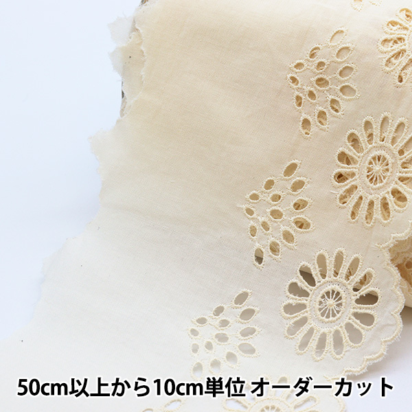 綿生地に綿糸で刺しゅうを施したレースです。