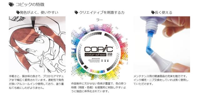 特長:プロも愛用するコピックスケッチを、デザインやアートに向いている色をまとめたコピックスケッチのスターティングセットです。