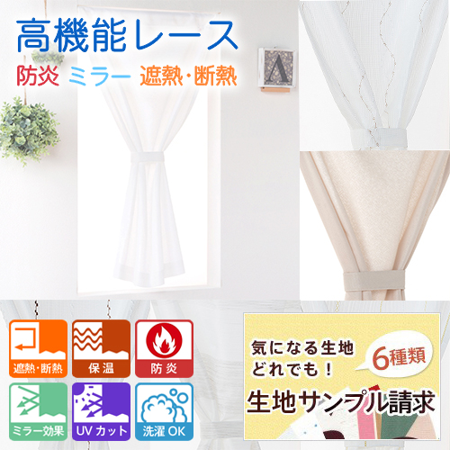 カーテン カフェカーテン レース オーダー 防炎 小窓用 生地サンプル 高機能 省エネ 遮熱 断熱 ミラー レースカフェカーテン【お一人様計6枚まで】