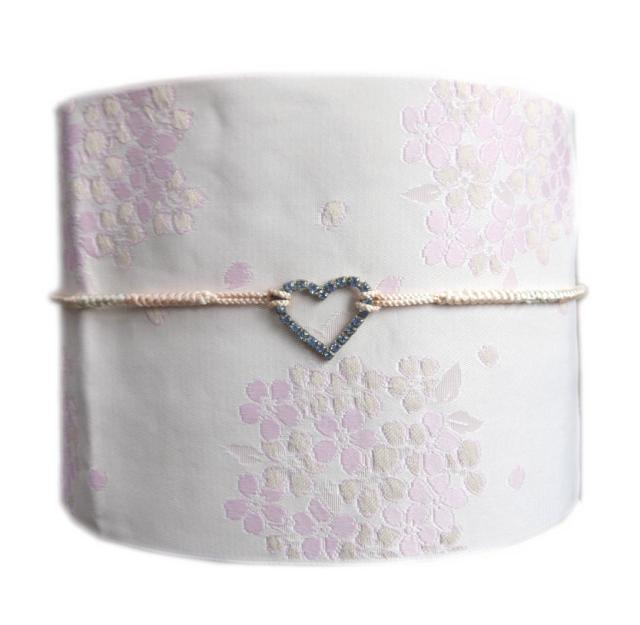 【訳有り 少難あり】 飾り紐 かざりひも ブルーラインストーンハート飾り付 薄ピンク白銀 正絹 浴衣 着物