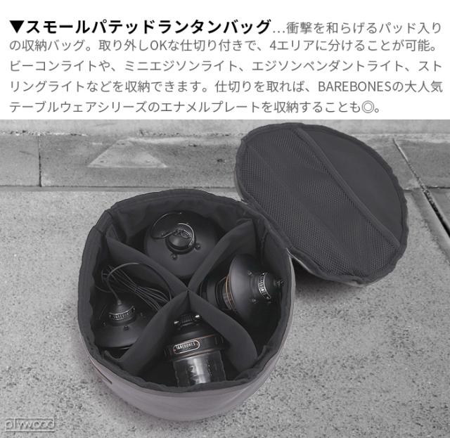 そんなパテッドランタンバッグに新サイズ「スモール」が登場!内部に取り外しOKな仕切りがついており、中を4つに分けることが可能。ビーコンライトや、ミニエジソンライト、エジソンペンダントライト、ストリングライトなどを収納することができます。また、仕切りを取れば、BAREBONESの大人気テーブルウェアシリーズのエナメルプレートを収納することもできちゃいます◎。