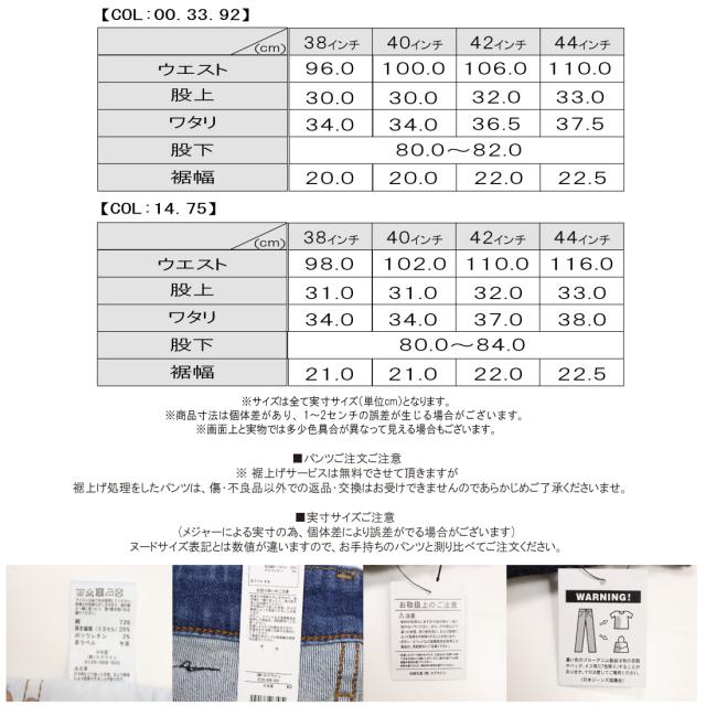 (ヌードサイズ表記とは数値が違いますので、お手持ちのパンツと測り比べてご注文ください。)