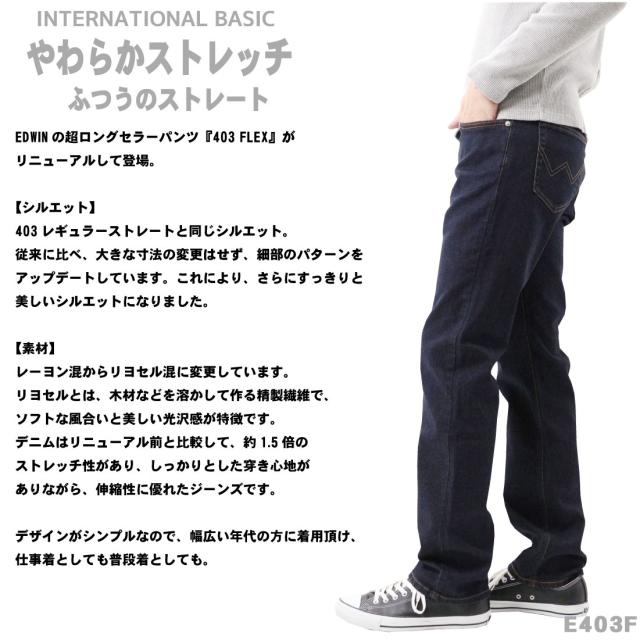 大きいサイズ EDWIN エドウィン ジーンズ 403FLEX ストレート E403F デニム ストレッチ インターナショナルベーシック 日本製 メンズ ボトムス 00 14 33 75 92