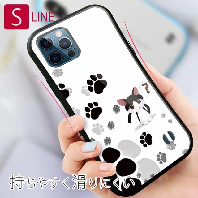 S-LINE ケース iPhone13 mini iPhone13 Pro Max iPhone12 Pro iPhone11 Pro iPhoneXs iPhoneXR Xperia 5 III Xperia 10 III Pixel 5a AQUOS sense6 かわいい ネコ 猫 用品 雑貨 誰の足跡?