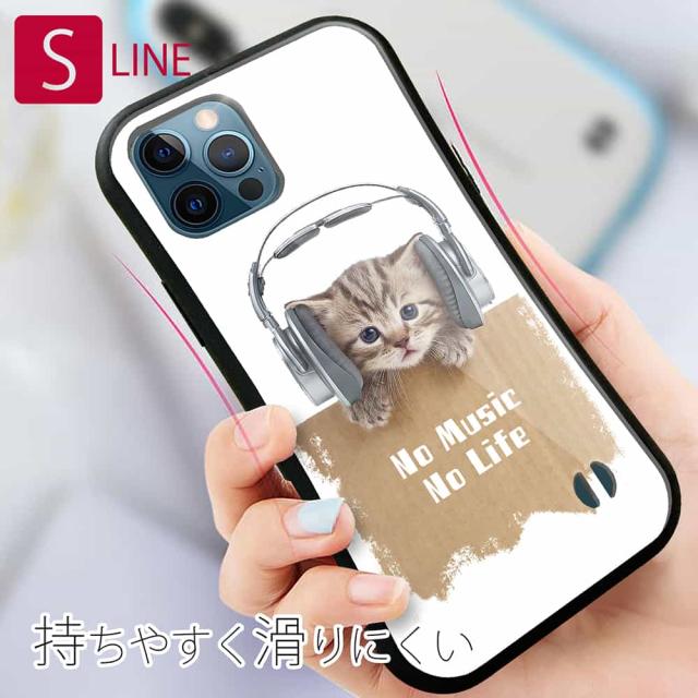 S-LINE ケース iPhone13 mini iPhone13 Pro Max iPhone12 Pro iPhone11 Pro iPhoneXs iPhoneXR Xperia 5 III Xperia 10 III Pixel 5a AQUOS sense6 かわいい ネコ 猫 用品 雑貨 猫だってNo Music No Life
