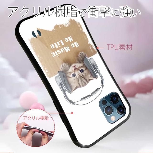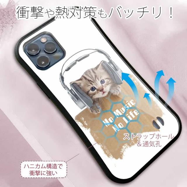 | 商品説明 | 落下や衝撃に強いTPUケース+綺麗に印刷できるアクリル板でプリント。「No Music」シリーズ。猫だって。 |