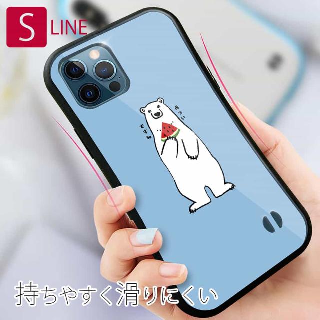 S-LINE ケース iPhone13 mini iPhone13 Pro Max iPhone12 Pro iPhone11 Pro iPhoneXs iPhoneXR Xperia 5 III Xperia 10 III Pixel 5a AQUOS sense6 かわいい しろくま 白熊 白クマ シロクマとスイカ(wakat)