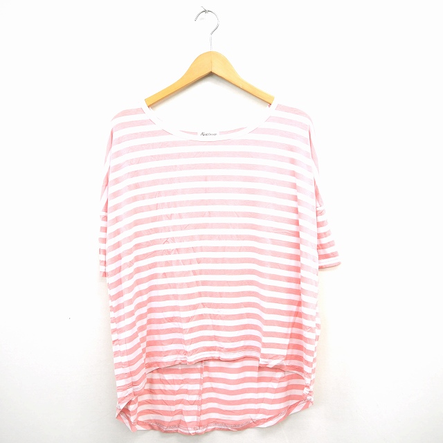 【中古】シネマクラブ CINEMACLUB Tシャツ カットソー ボーダー 丸首 半袖 M ライトブルー ホワイト 白 レディース