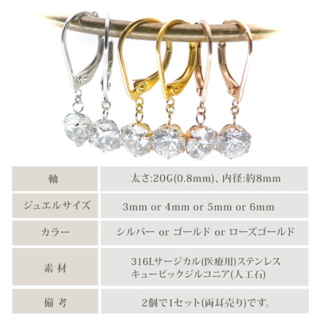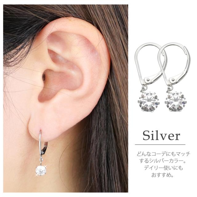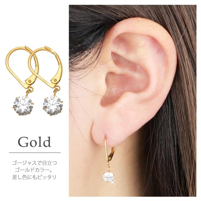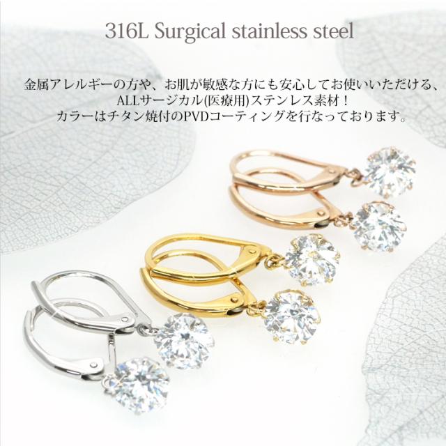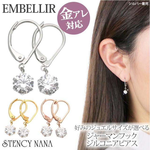金アレ対応 [EMBELLIR] ステンレスピアス キュービックジルコニアのジャーマンフックピアス 両耳用サージカルステンレス