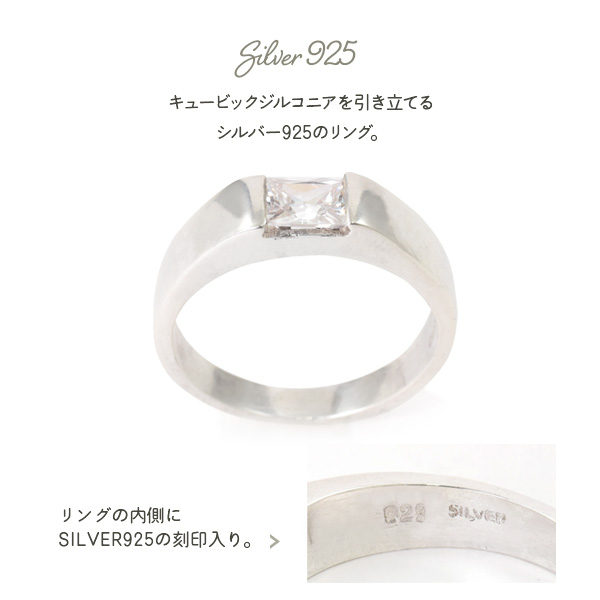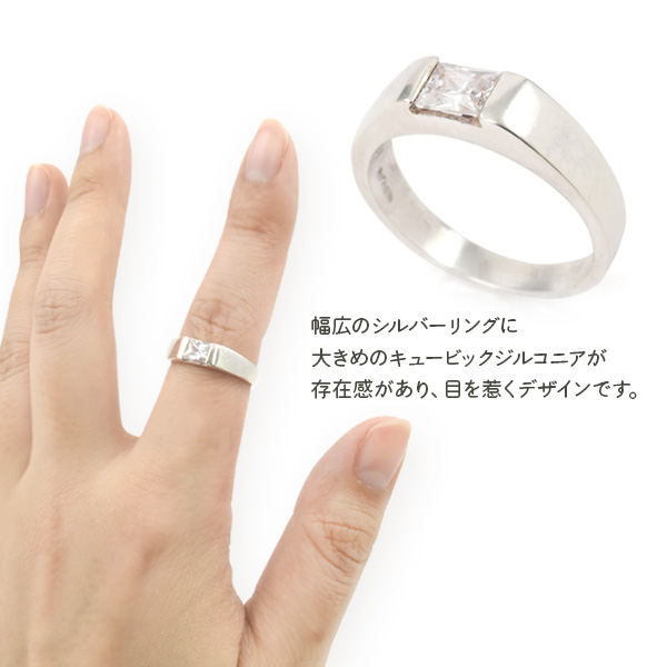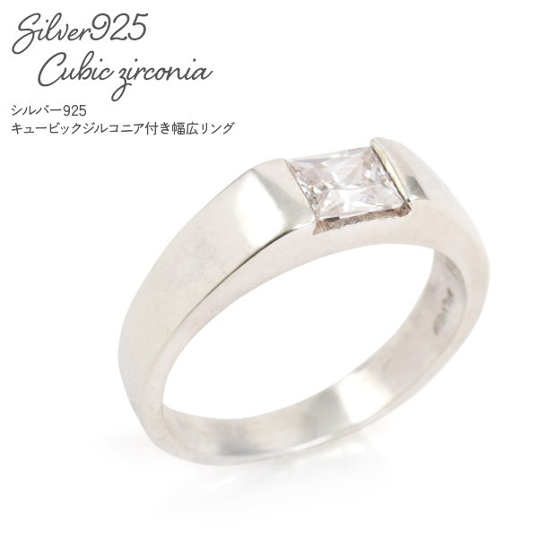 シルバー925 キュービックジルコニア付き 幅広シルバーリング 7号から15号まで 奇数号のみ 4月 誕生石 指輪 プレゼント お守り セルフギフト SR0177 爪なし czダイヤ silver925