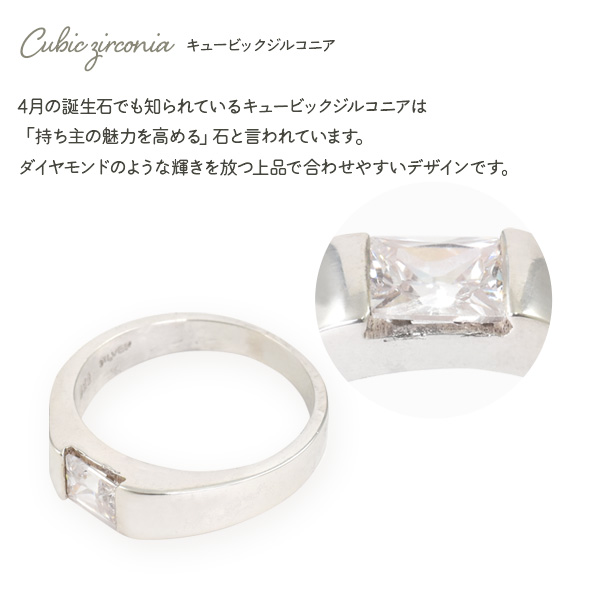 大きくカットされたキュービックジルコニアがあしらわれたシルバーリング。