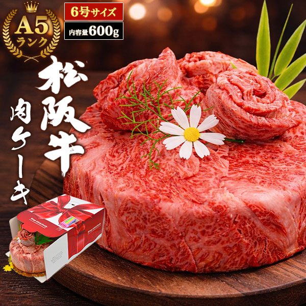 肉ケーキ A5 松阪牛【600g / 3〜4人用】プレゼント 最高級A5ランク 肩ロース しゃぶしゃぶ すき焼き用スライス肉 モモ肉 焼肉用 2種食べ比べ 6号サイズ 送料無料 黒毛和牛 牛肉 お肉 BBQ 松坂牛 誕生日ケーキ 甘いもの苦手 変わり種 食べ物 お年賀 ホワイトデー ギフト