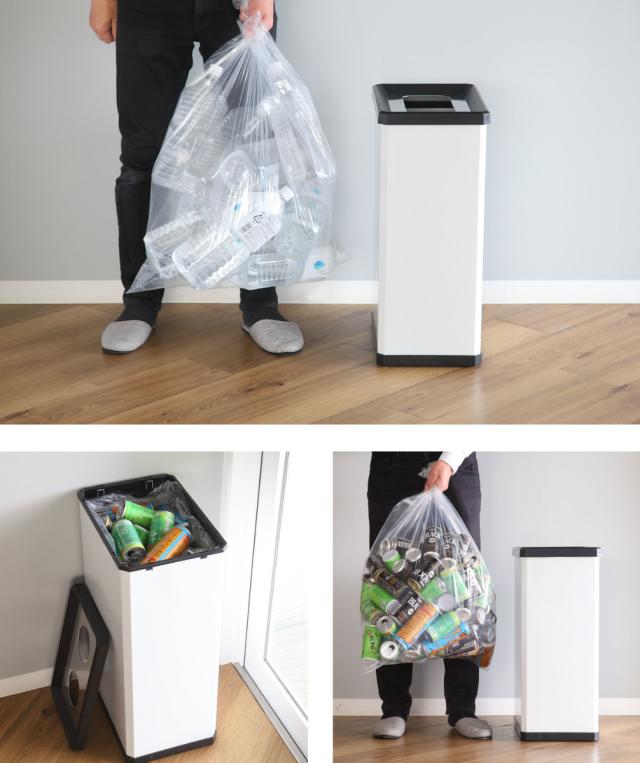 スリムで大きすぎないサイズ感なので使い勝手も良く、省スペースで置けるので空間がスッキリします。2Lのペットボトルを潰さずに入れると約11本捨てることができます。