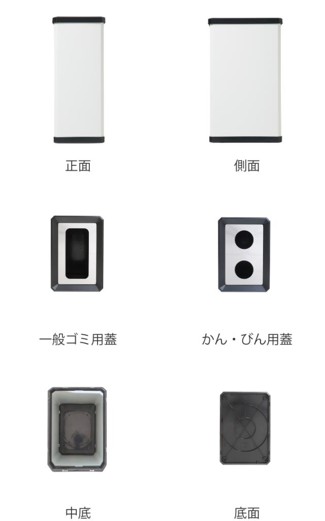 | 備考 | 一般ゴミ用ゴミ箱 重量:3.7kg かん・びん用ゴミ箱 重量:約3.8kg シール1枚入り(お客様貼り付け) 袋止め付 市販の45L用ポリ袋使用可能 グリーン購入法適合品 |