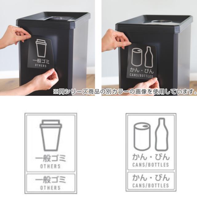 一般ゴミ用のゴミ箱には「一般ゴミ」シール、カンビン用ゴミ箱には「かん・びん」シールがそれぞれ付属しています。イラストがあるので一目で分別ができます。日本語と英語の2ヵ国語表記です。