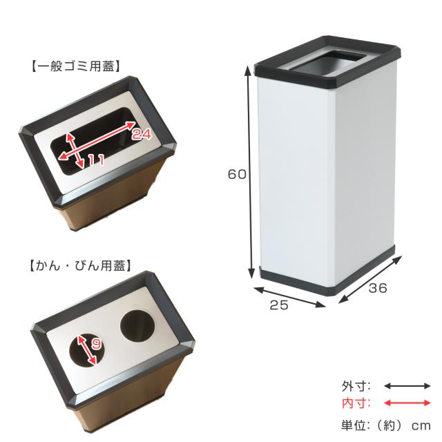 約幅25cmのスリムな設計です。「一般ゴミ用」と「かん・びん用」の2タイプがあります。スリムなデザインなので、限られたスペースにも置くことができます。