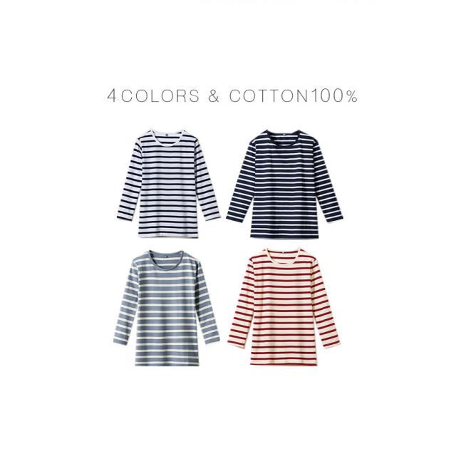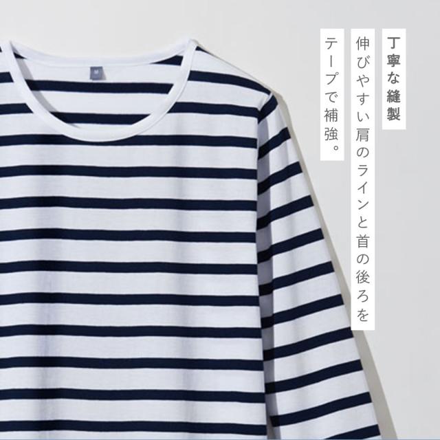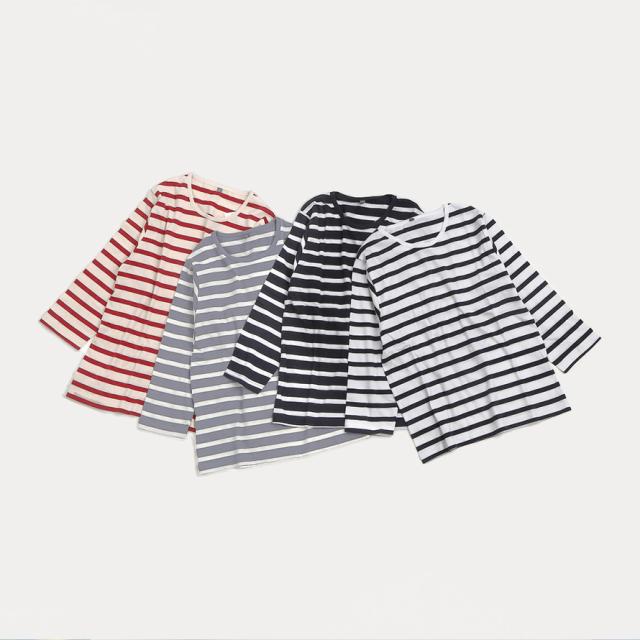 着まわし抜群な、インド綿100%の7分袖ボーダーロングTシャツ。