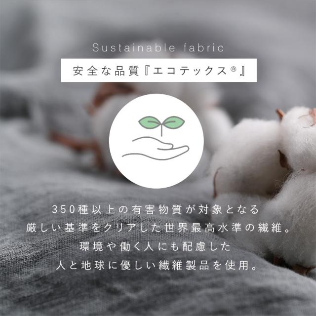 エコテックス認証とは、350種以上の有害物質が対象となる厳しい基準をクリアした製品にのみ与えられる、安全性に対する認証です。