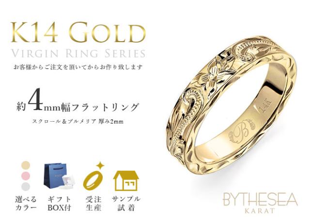 ハワイアンジュエリー K14 ヴァージンリング ヘビーウェイト 約4mm幅 指輪