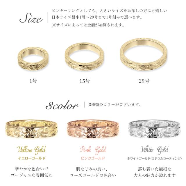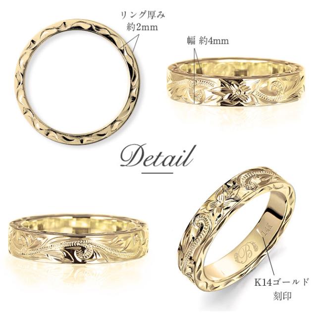 ハワイアンジュエリー オーダーメイド ゴールドリング 刻印 無料 誕生石入れ可 指輪 K14 14金 幅約4mm 1号〜29号 小さいサイズ 大きいサイズ 受注生産 ヴァージンリング リング メンズ レディース 誕生日 プレゼント 【品番:GSR301】