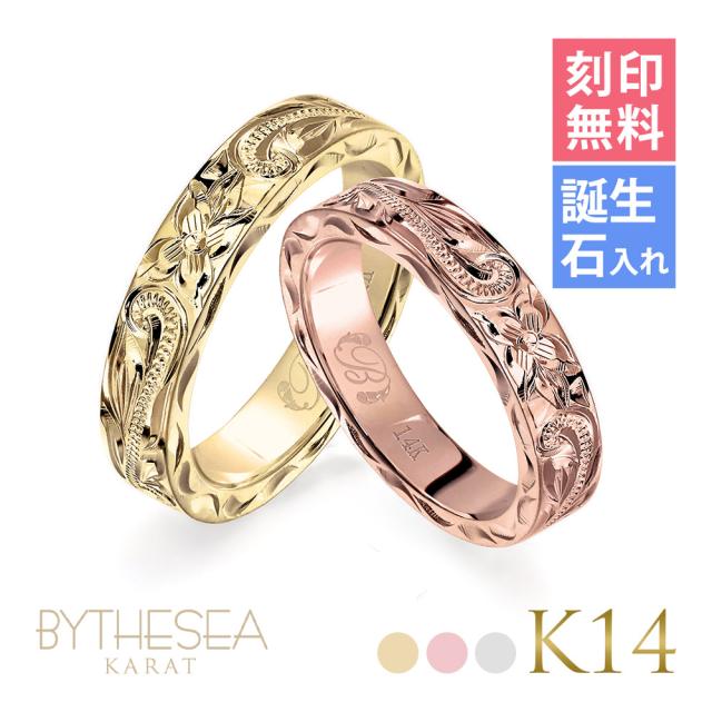 ハワイアンジュエリー 結婚指輪 ペアリング 刻印 無料 誕生石入れ可 指輪 2個セット 専用BOX付 K14 14金 幅約4mm 1号〜29号 小さいサイズ 大きいサイズ 受注生産 ヴァージンリング リング カップル 夫婦 プレゼント 【品番:GSR301P】