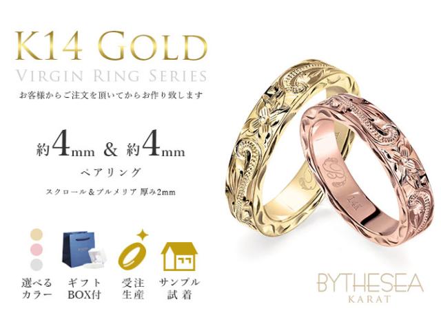 ハワイアンジュエリー K14 ヴァージンペアリング ヘビーウェイト 約4mm幅 結婚指輪