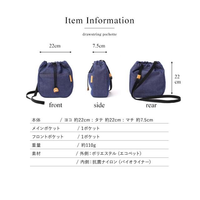 巾着ポシェット バッグ ミニバッグ レディース 軽い 日本製 撥水加工 国産 抗菌ナイロン 女性 大人 かわいい 便利 軽量 paccapacca