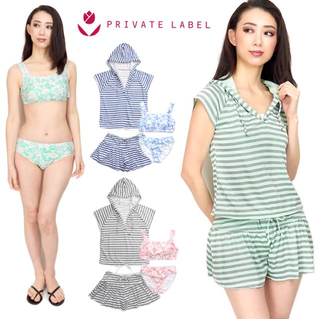 【送料無料】PRIVATE LABEL トップス付きビキニ水着4点セット 9M 11L プライベートレーベル 35650323 No.sw2876