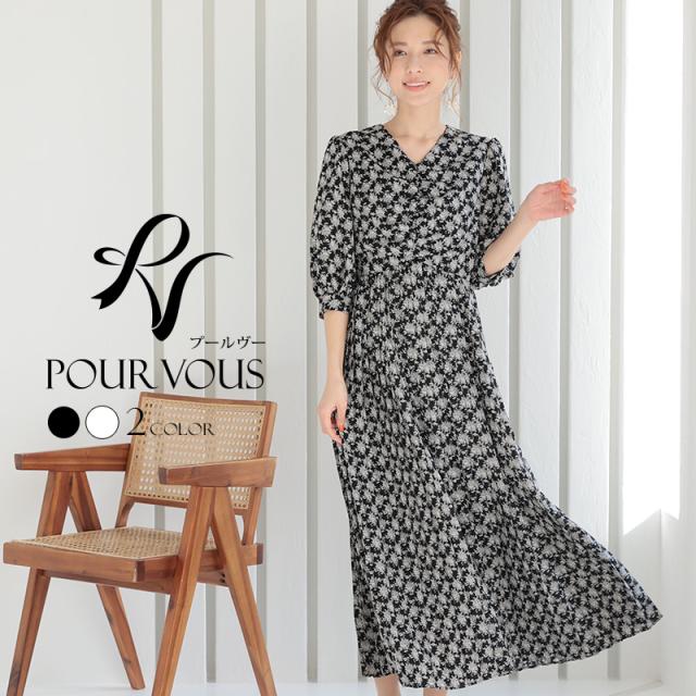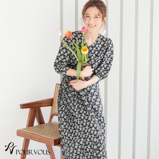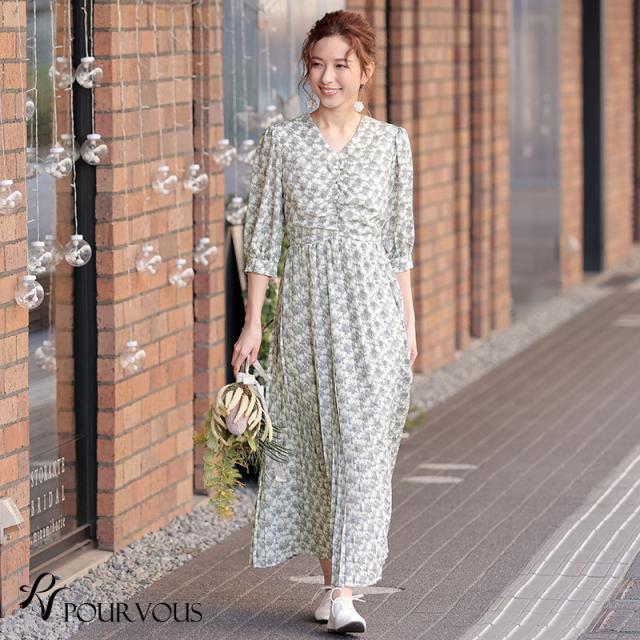 ★カジュアルでもプチオケージョンシーンでも着られる、ブーケ柄の可愛いマキシ丈ワンピース。
