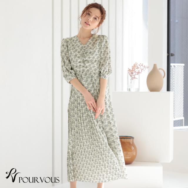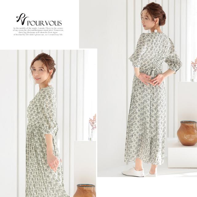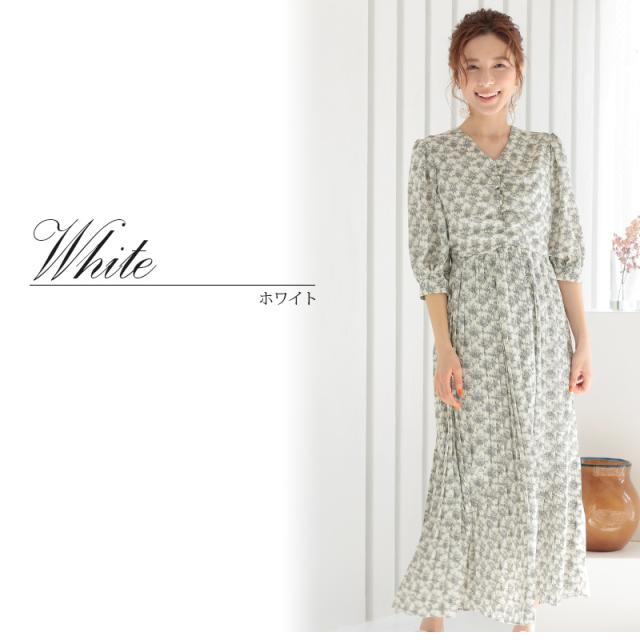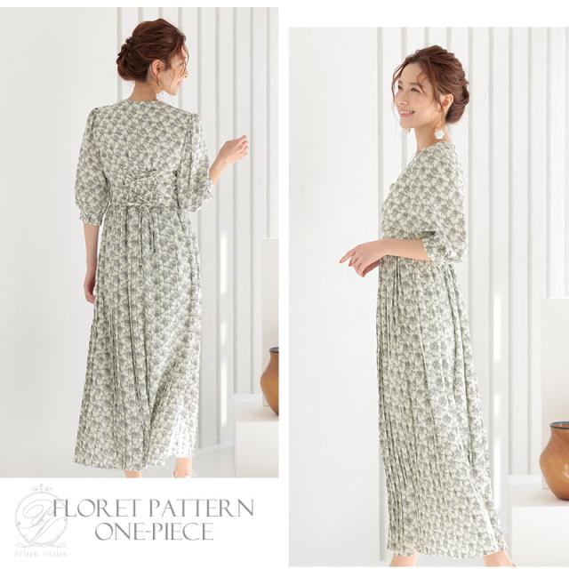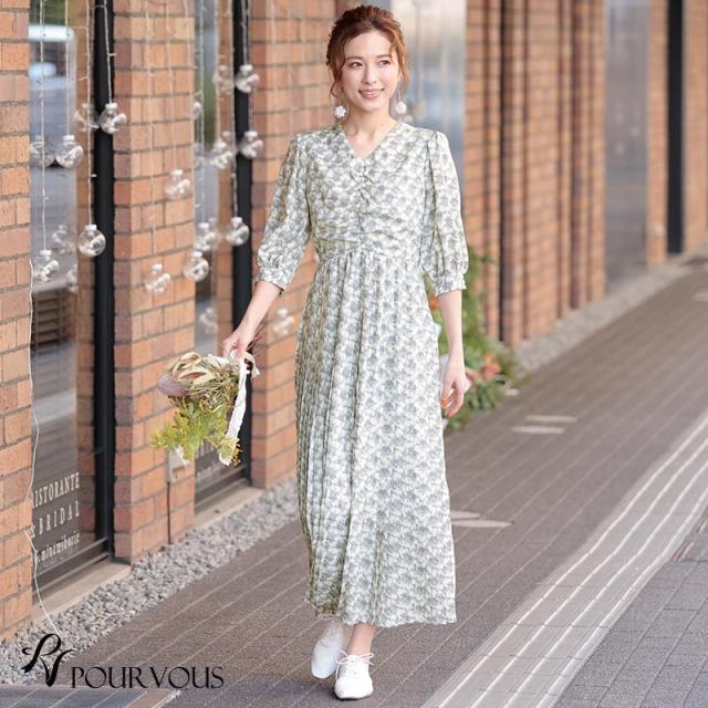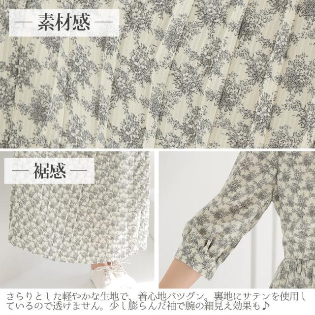 花柄プリーツスピンドルワンピース【596211222】20代・30代・40代・50代長袖・膝丈・セットアップ・スカート・体型カバー・ジャケット・テーラード・スーツ・大きいサイズなど・即日発送・送料無料結婚式・婚活・披露宴・顔合わせ・二次会・同窓会・お呼ばれ・食事会・謝恩会・親族・七五三・お宮参り・冠婚葬祭・弔事・女子会・デート・入学式・卒業式・入園式・卒園式・ママ・マタニティー・セレモニー・セレブ・パーティー