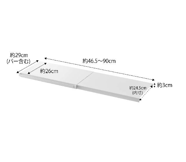 つっぱり棒に乗せるだけで棚が完成! 伸縮式なので使いたい幅に合わせて設置できます。 |