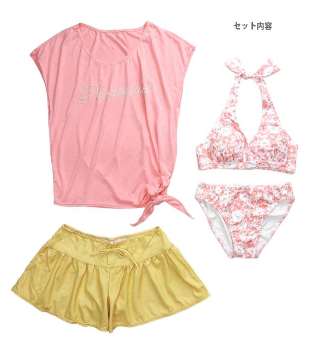 PRIVATE LABEL トップス付き花柄ビキニ水着4点セット 9M 11L 13L プライベートレーベル 35650322 レディース No.sw2877