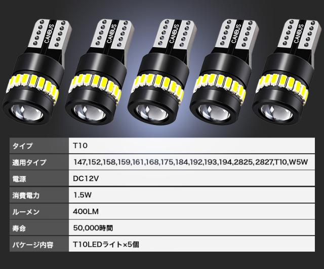 T10 LED ポジションランプ 18連 3014+3030SMD レンズライト付き [進化版] 5個セット 400ルーメン キャンセラー内蔵