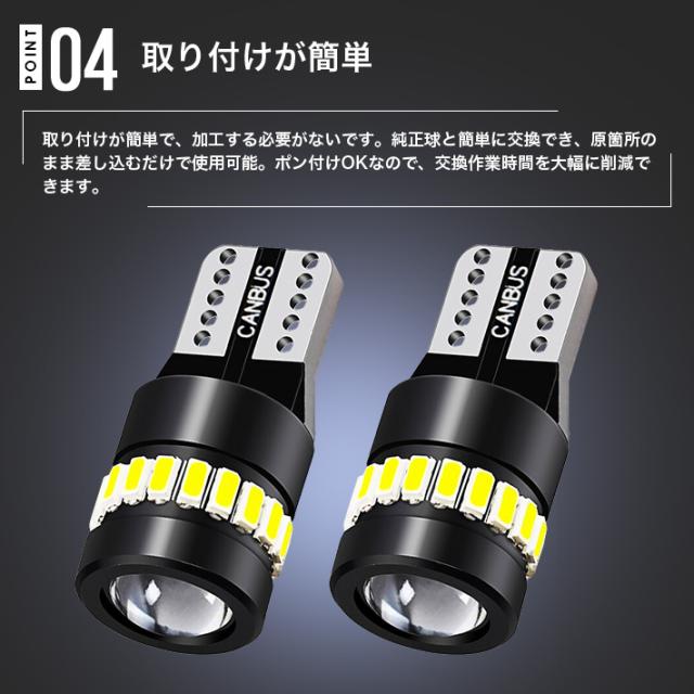 無協性なので、正負級の注意がないです。直接に原箇所のまま差し込むだけで使用できます。また、このT10 LEDランプはキャンセラー内蔵、警告灯がつきません。大部分の車種に適用です.