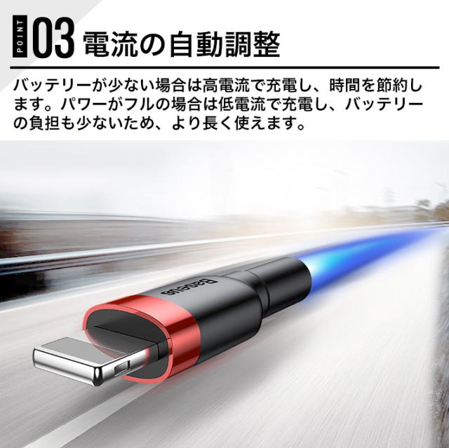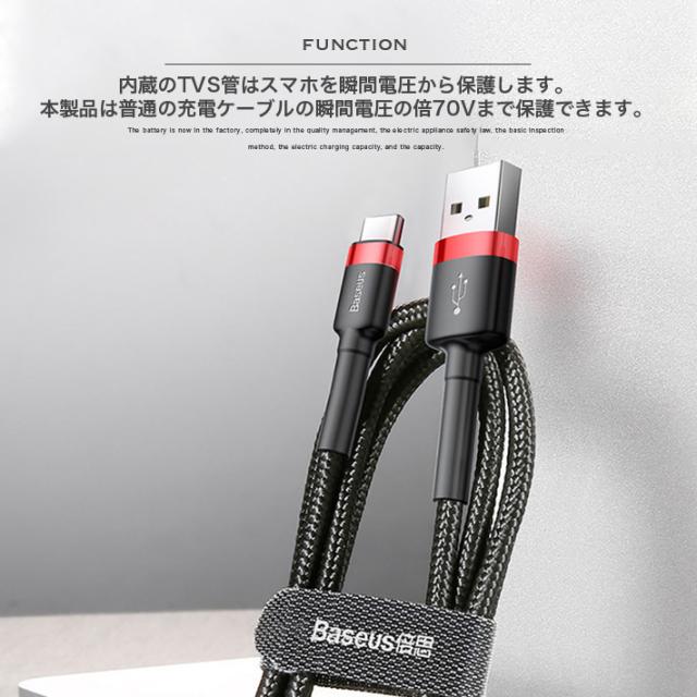 【インテリジェントパワーオフチップ】スマートチップを搭載したスマートチップを内蔵しています。スマートチップは自動的に電流を調整し、電話機にバッテリがいっぱいになると自動的に切断し、。一晩中充電することを恐れることはありません。内蔵のTVS管はスマホを瞬間電圧から保護します。普通の充電ケーブルの瞬間電圧の抵抗力は20-30Vで、本製品は70Vまで保護できます。